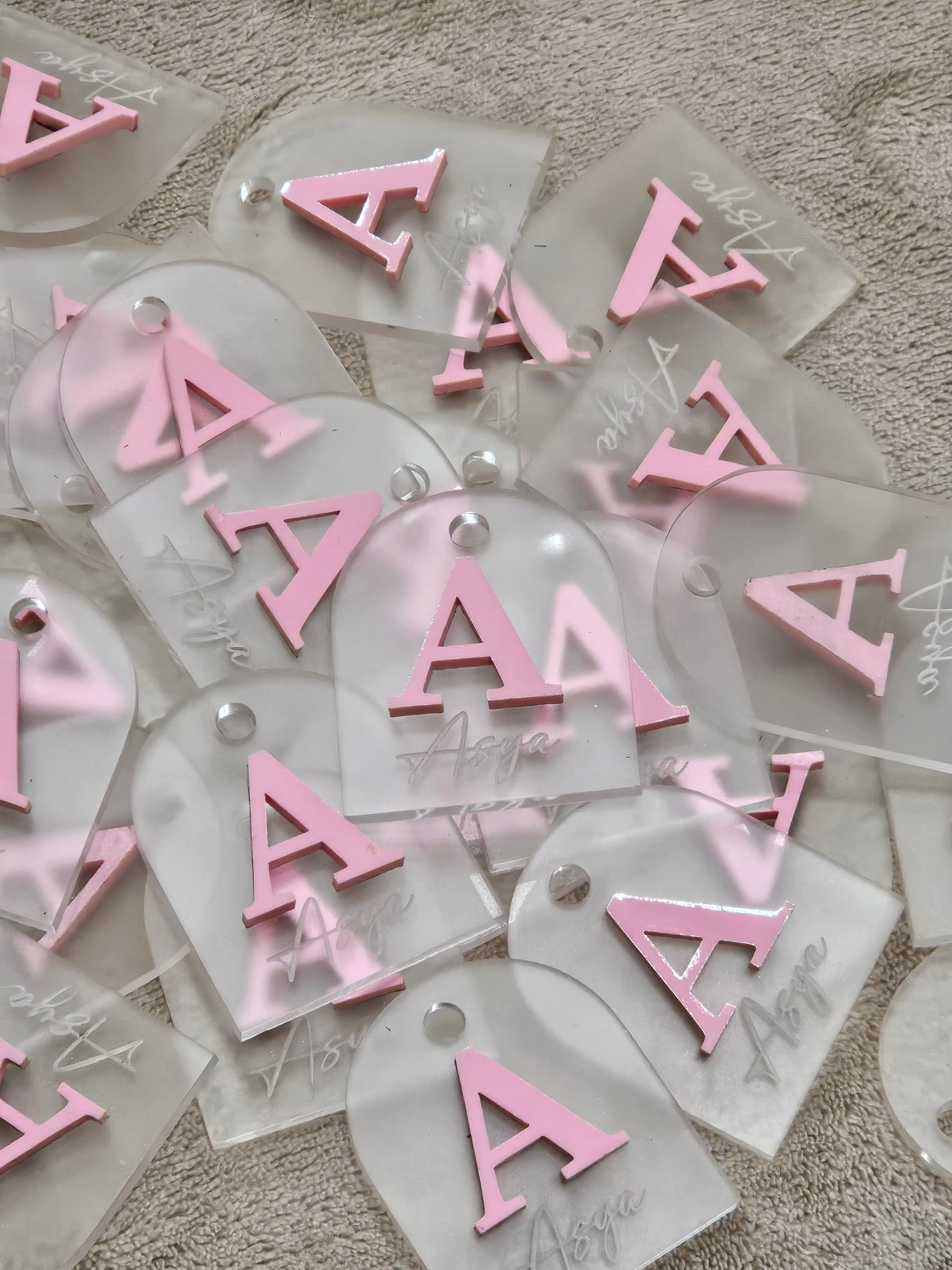 All tags will come with a Frosted acrylic base option of selecting Letter on top