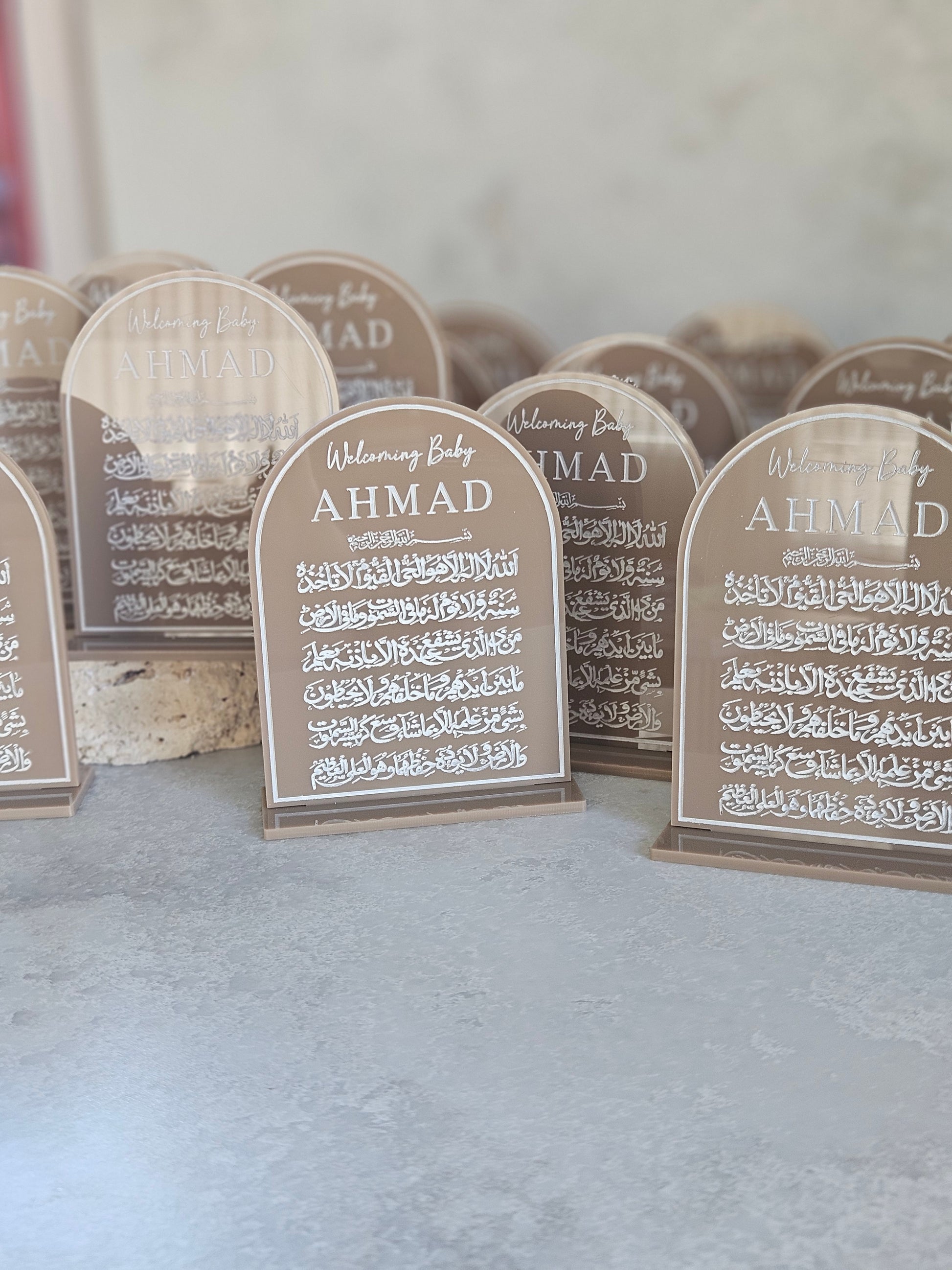 Our fully customisable Ayatul Kursi pieces are crafted from 3mm acrylic in your choice of colour. Standing at approximately 11cm tall. Create a meaningful addition to your decor or gifts with these elegant and personalised pieces!